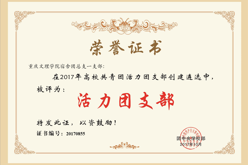 近日,团中央学校部下发文件公布2017年全国高校“活力团支部”名单,开元宿舍团总支一支部经过校内创建、省级遴选、网络投票、专家评审和公示等环节脱颖而出,荣获2017年全国高校“活力团支部”荣誉称号。全国高校共有1000个团支部被确定为2017年全国高校“活力团支部”,其中重庆市高校有25个支部入选。
