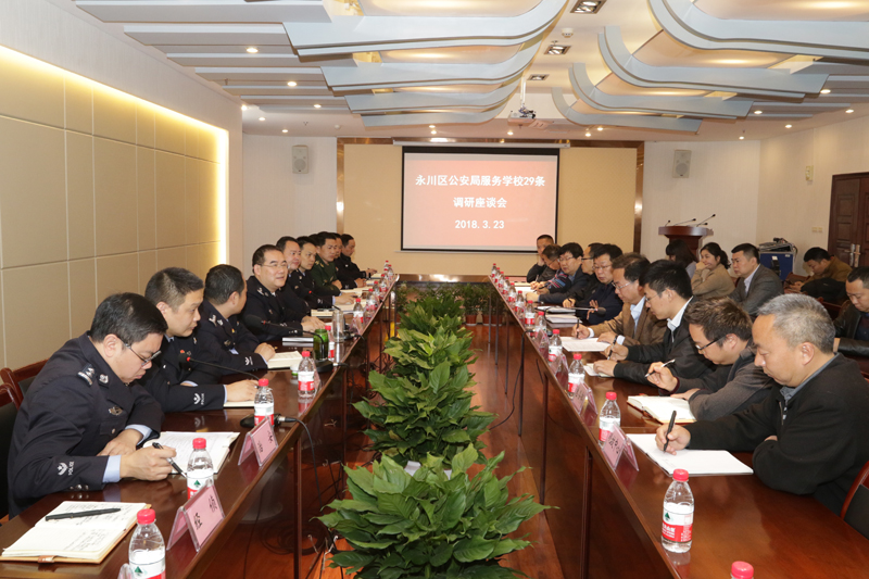 为深入贯彻重庆市公安局落实服务学校29条措施,进一步净化校园及周边治安环境,3月23日上午,永川区副区长、公安局局长刘建中带领校保、交巡警支队、凤凰湖派出所、刑警支队、治安支队、消防支队、经侦支队、国保支队、指挥中心、出入境管理、网安中心等警种负责人一行走进开元开展调研座谈。学校党委副书记、纪委书记李德全,相关部门负责人和工作人员参加了调研座谈会。