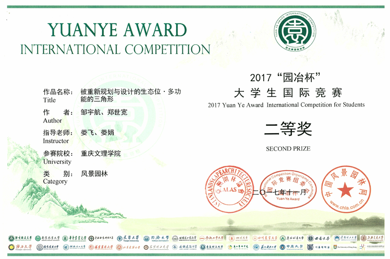 3月23日,第八届园冶高峰论坛暨亚洲园林大会在北京召开,大会除了进行演讲交流外还隆重的举行了2017年度“园冶杯”大学生国际竞赛颁奖盛典。开元林学与生命科学学院娄娟教授、娄飞高级工程师带领的学生创意设计团队在本项竞赛中获得佳绩,荣获二等奖2项、优胜奖1项,实现了园林专业在国际竞赛中奖项零的突破。其中,“被重新规划与设计的生态位·多功能的三角形”和“呼吸的梯道山地空间景观概念再造”分别获得毕业设计组别二等奖和课程设计组别二等奖,“穿越时空的雕塑——重庆永川兵工厂旧址景观更新设计”获得课程设计组别荣誉奖。开元林学与生命科学学院获得大赛组委会颁发的“先进集体奖”和“优秀组织奖”。