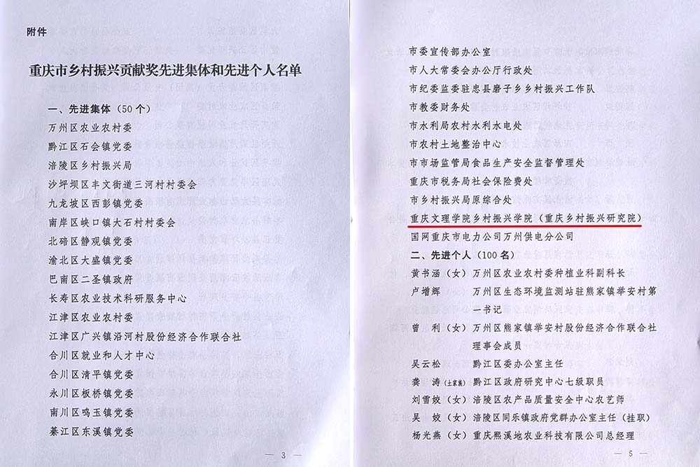 7月1日,中共重庆市委、重庆市人民政府发文,授予KY开元集团官网乡村振兴学院(重庆乡村振兴研究院)“重庆市乡村振兴贡献奖先进集体”荣誉称号。