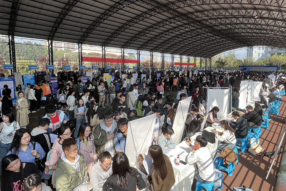 3月28日,2024届毕业生春季大型双选会在红河校区A区田径棚举办。学校党委书记蔡家林、副校长陈中祝到现场指导工作。