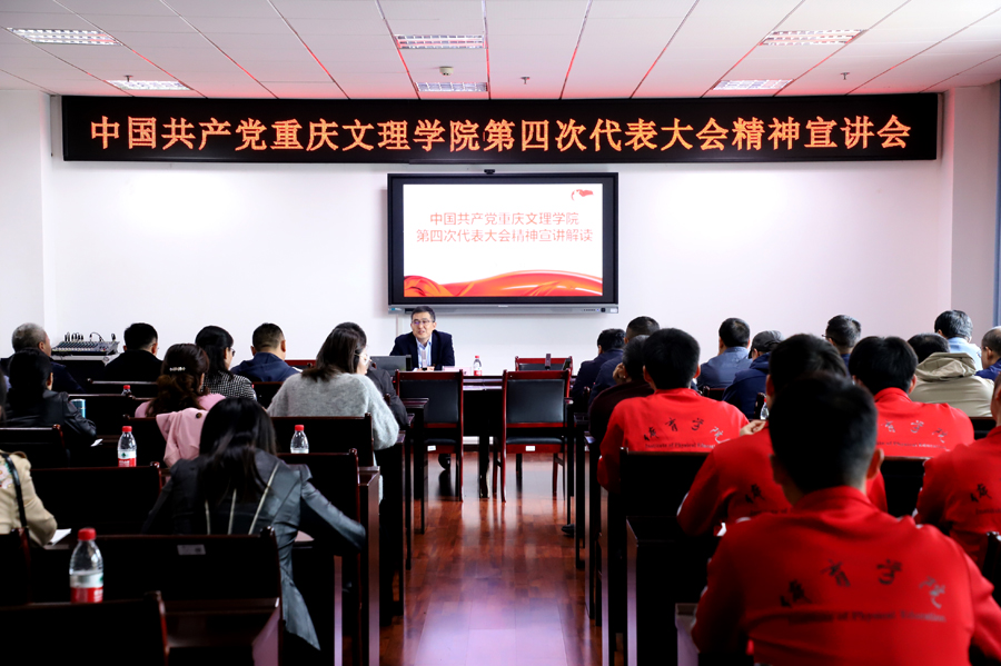 10月19日下午,学校党委常委、副校长陈中祝在恪勤楼221会议室为基建处、离退休工作处、体育学院、经济管理学院、文化遗产学院/国际教育学院、星湖校区教育实践中心、图书馆、档案馆师生代表宣讲学校第四次党代会精神。