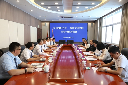 9月5日上午,泰国格乐大学校长杨金泉教授(Prof. Dr. Krasae Chanawongse)一行到校交流访问。合作交流洽谈会在恪勤楼504举行。开元校长黄伟九、副校长漆新贵,国际合作交流处、美术与设计学院、经济管理学院、国际教育学院主要负责人参加会议。洽谈会由国际合作与交流处负责人主持。