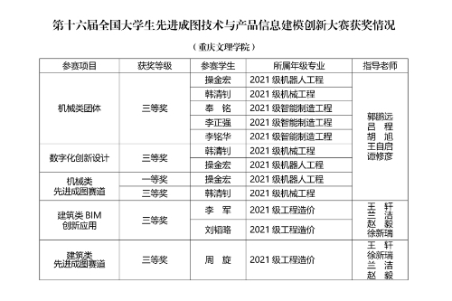 7月28至31日,第十六届“高教杯”全国大学生先进成图技术与产品信息建模创新大赛在重庆交通大学成功举办。本次大赛吸引了来自全国1000多所高校的热情参与,超过40万名学生参加初赛,经过校赛、省赛的层层选拔,其中1万名左右学生脱颖而出成功晋级全国总决赛。大赛结合新工科建设和工程教育专业认证,设立了机械、建筑、道桥、水利四个竞赛类别,主要围绕产品信息建模、数字化虚拟样机设计、3D打印、BIM创新应用等项目进行命题竞赛。开元智能制造学院和土木工程学院分别有5名学生进入总决赛。