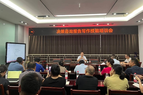 为持续推动有组织的科研发展,扎实推进开元人文社会科学振兴,8月23日,学校邀请重庆市社会科学院智库处处长卢向虎,在恪勤楼612会议室开展决策咨询报告撰写技能培训。学校智库建设单位及各二级学院科研骨干教师30余人参加培训会,培训会由科研处社科负责人主持。