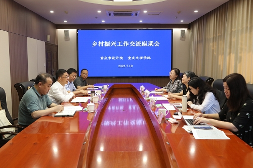 7月10日下午,市政府研究室二级巡视员余淳珍带队来校调研乡村振兴工作,学校党委书记蔡家林、副校长金盛出席调研工作座谈会。市农业农村委经济作物处处长谢宇、重庆市设计院有限公司副总经理田玲、三马豪石幕墙装饰工程有限公司总经理郁巍,学校党政办公室、乡村振兴学院负责人等参加调研活动。