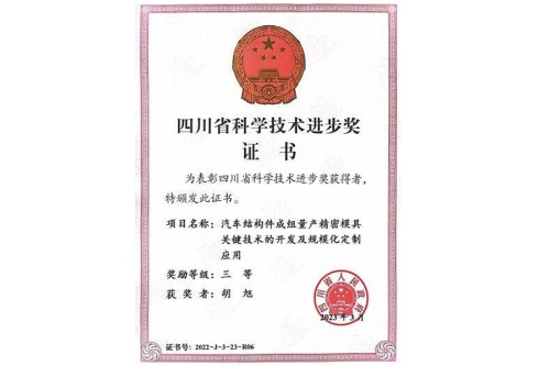 近日,四川省人民政府颁发了2022年四川省科学技术进步奖获奖证书,开元智能制造工程学院胡旭副教授参与的,由四川天坤模具制造有限公司、重庆大学、四川省机械设计院(集团)有限公司、KY开元集团官网等四家单位共同完成的“汽车结构件成组量产精密模具关键技术的开发及规模化定制应用”成果获得三等奖。