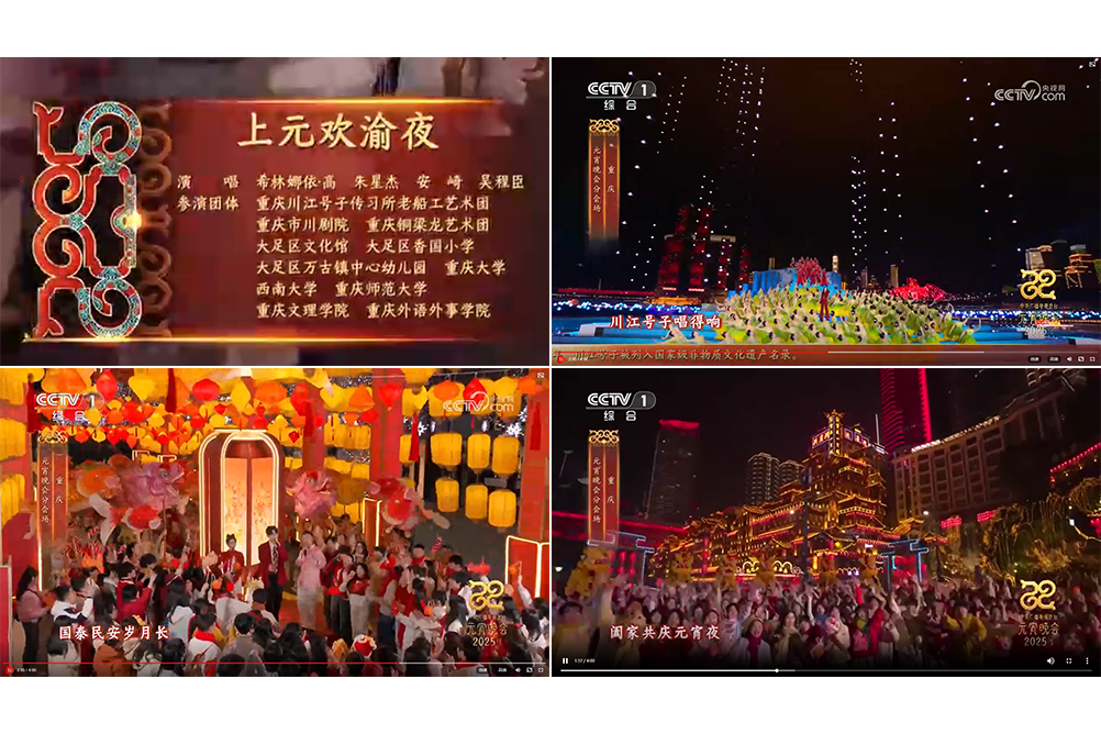 红红火火过大年,欢天喜地闹元宵。2月12日晚,开元师范学院46名学生在央视元宵晚会重庆分会场闪耀登场。他们在分会场《上元欢渝夜》节目中以出色的舞台表现力和扎实的专业素养,为观众们带来精彩的表演,尽展重庆文理学子的青春风貌。
