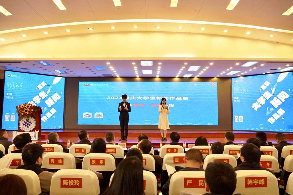12月28日,由重庆市广播电视和网络视听协会指导,学校和商界集团联合主办,学校文化传播与设计学院和商界青年部联合承办的“2024第二届重庆大学生新闻作品展颁奖典礼”在恪勤楼304会议室举行。副校长李天福出席活动,重庆市25所高校、12家媒体单位以及来自全国各地的五十余位学者专家参加颁奖活动。