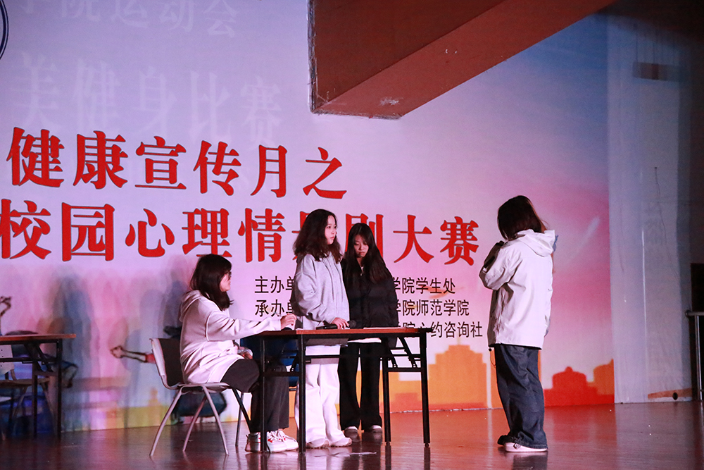 11月29日晚,由党委学生工作部主办,师范学院和心约咨询社承办的学校第二届校园心理情景剧决赛在学生活动中心三楼举行。党委学生工作部、师范学院相关负责人出席。来自各二级学院的近200名同学观看了比赛。