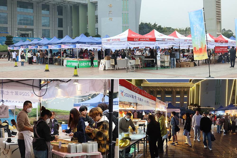 11月13—15日,2024第十七届重庆·永川大学生校园自办展在红河校区学海广场举行。展会由学校教务处主办、经济管理学院承办、会展系2022级会展经济与管理专业全体学生协办,以“青春聚汇,展创未来”为主题,36家企业1600余件展品参展,吸引约6000名观众现场参观及选购商品。