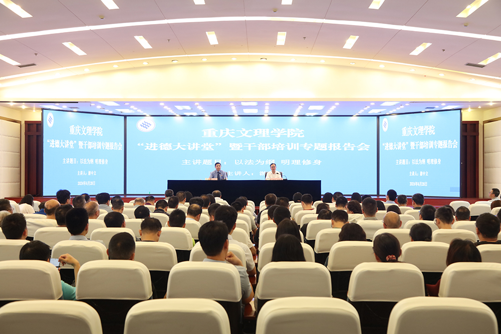 6月28日,学校邀请全国模范检察官、重庆市检察院第一分院三级高级检察官游中立走进学校“进德大讲堂”作了《以法为纲 明理修身》专题报告。党委副书记祝朝伟主持报告会。