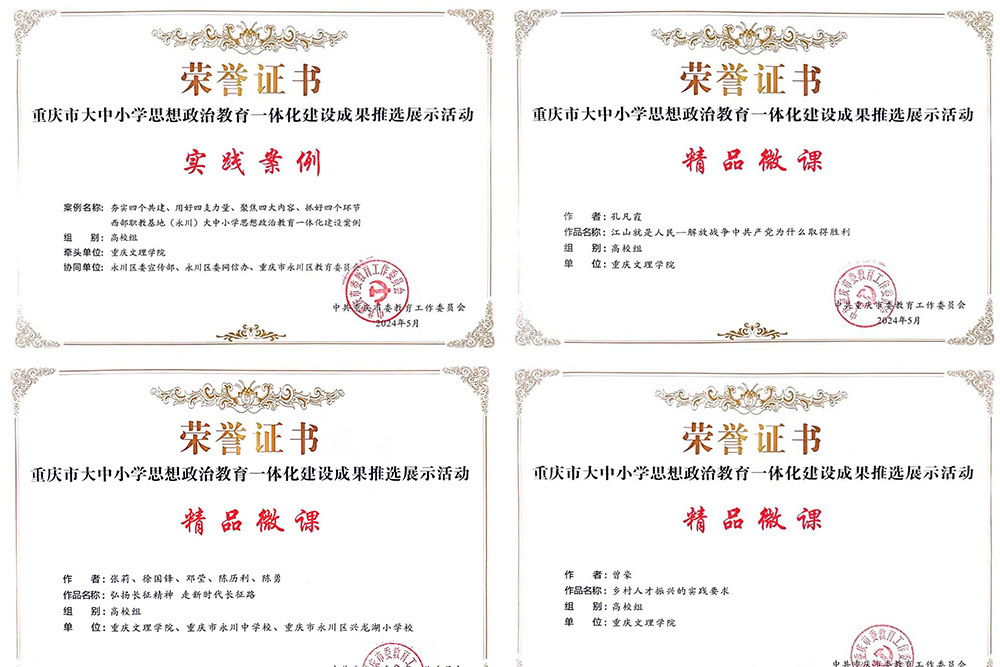 近日,中共重庆市委教育工作委员会印发了《中共重庆市委教育工作委员会关于公布重庆市大中小学思想政治教育一体化建设成果推选展示活动结果的通知》,开元获3个精品微课,1个实践案例和1名优秀工作者,入选成果总数和入选种类均居全市第一。