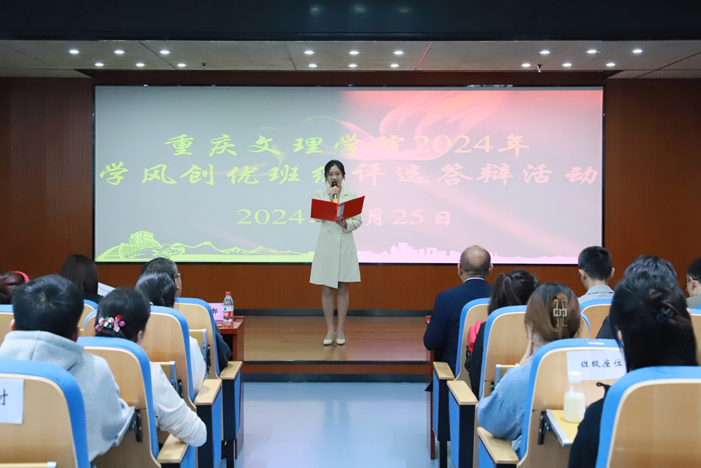 为进一步树立先进典型,发挥榜样示范作用,学校开展了2024年学风创优班级评选。4月25日下午,评选答辩活动在知行楼A601举行。党委宣传部、教务处、党委学生工作部、校团委相关负责人及辅导员代表和学生代表担任评委。各二级学院辅导员、学生代表到场观摩学习,共计250余人参加了本次评选活动。