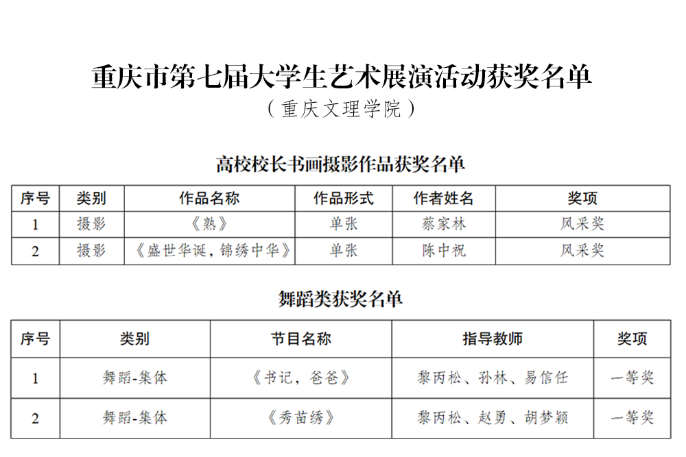 近日,由重庆市教委主办的重庆市第七届大学生艺术展演活动获奖名单公布。开元荣获校长风采奖2项,一等奖20项、二等奖31项、三等奖10项,共获奖63项。