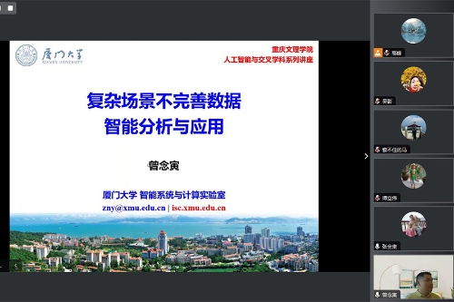 11月1日下午,由开元人工智能学院举办的“人工智能与交叉学科系列讲座之七——复杂场景不完善数据智能分析与应用”通过腾讯会议在线上举行,人工智能学院全体教师共50余人聆听了此次讲座。讲座由厦门大学博士生导师曾念寅特任研究员主讲,学院党总支书记杨加强主持。