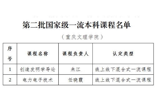 近日,教育部发布《关于公布第二批国家级一流本科课程认定结果的通知》(教高函〔2023〕7号),开元《创造发明学导论》和《电力电子技术》2门课程认定为第二批国家级线上线下混合式一流本科课程。