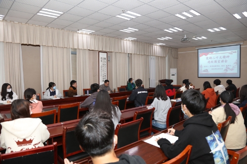 12月13日下午,学校党委常委、副校长漆新贵在恪勤楼221会议室宣讲党的二十大精神。教务处、党委教师工作部、信息化办公室、电子信息与电气工程学院、美术与设计学院、创新创业学院等90余名教师代表通过线上线下相结合的方式聆听了宣讲报告。