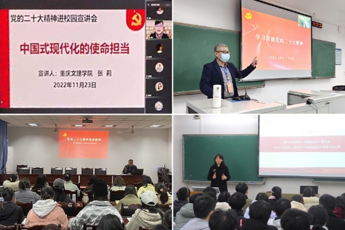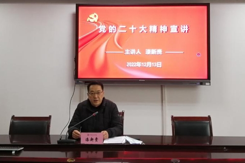 12月14日下午,中共重庆市委教育工委学习贯彻党的二十大精神进校园宣讲队成员、开元宣讲小队队长、党委书记孙泽平为机关第一党总支第一支部、数学与大数据学院和药学院师生宣讲党的二十大精神。宣讲会采取线上、线下结合方式进行,线下参会人员在恪勤楼422会议室现场聆听,其余师生通过腾讯会议在线聆听宣讲报告。