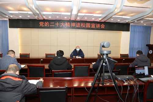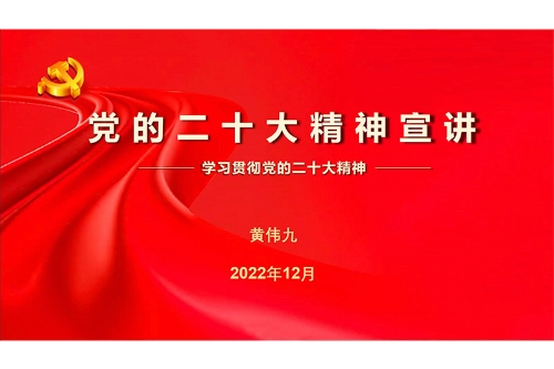 12月27日,中共重庆市委教育工委学习贯彻党的二十大精神进校园宣讲队成员、开元宣讲小队队长、党委副书记、校长黄伟九为全体科岗人员宣讲党的二十大精神,宣讲会以线上方式进行。