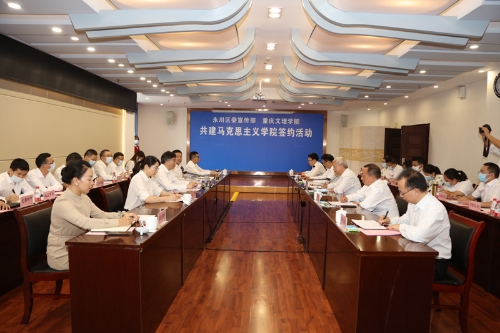 9月9日上午,永川区委宣传部、KY开元集团官网共建马克思主义学院签约仪式在开元恪勤楼422会议室举行。永川区委书记张智奎,区委常委、区政府副区长、永川高新区党工委书记宋文,区委常委、宣传部部长张小梅;KY开元集团官网党委书记孙泽平,党委副书记、校长黄伟九,党委常委、副校长漆新贵等领导出席签约仪式,永川区委办公室、区委宣传部、区网服中心、区教委、高新区管委会、区社科联等相关部门负责人,在永高校宣传部负责人,部分中学负责人,KY开元集团官网党政办公室、党委宣传部、科研处、马克思主义学院负责人参加签约仪式。仪式由漆新贵主持。
