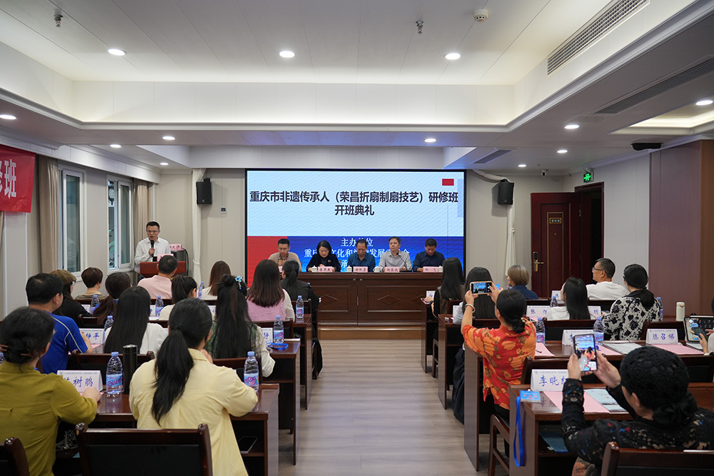 10月17日上午,文化和旅游部、教育部、人力资源和社会保障部联合实施的中国非物质文化遗产传承人研修培训——2025年重庆市非遗传承人(荣昌折扇制扇技艺)研修班开