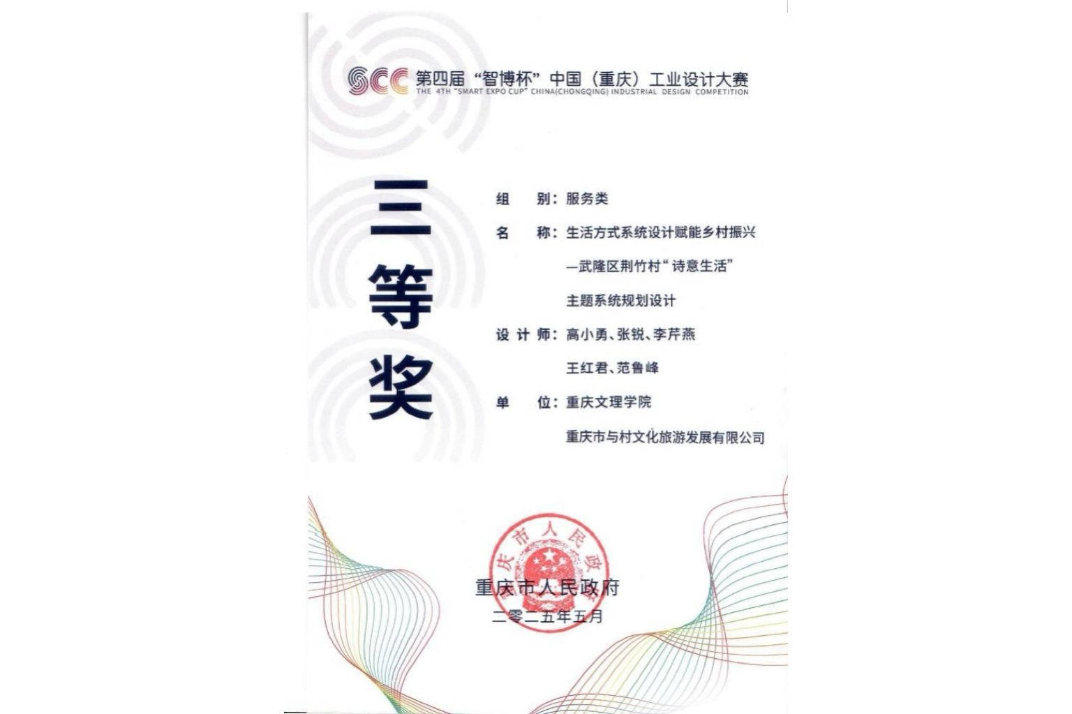 近日,第四届“智博杯”中国(重庆)工业设计大赛获奖名单正式公布。开元文化传播与设计学院高小勇教授团队申报的“生活方式系统设计赋能乡村振兴——武隆区荆竹村‘诗意生