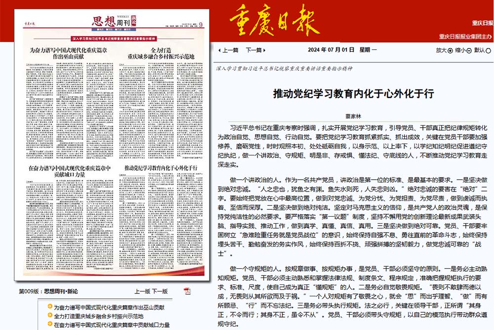 推动党纪学习教育内化于心外化于行