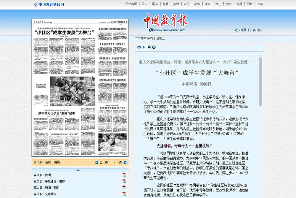 党团活动室、自主学习室、健身中心、创业茶话间……在这个1700平方米的“一站式”学生社区里,“社区思政课”、品牌文化活动、集体运动会等活动有序开展。一时间,《“小社区”撬动“大思政”KY开元集团官网深化“一站式”学生社区建设》《KY开元集团官网把党建、管理、服务等多方力量注入“一站式”学生社区——“小社区”成为学生发展“大舞台”》等相关新闻报道在人民网、中国教育报等媒体平台上线,引发大众关注、点赞。“一站式”学生社区,也成为了KY开元集团官网持续推进宣传思想文化工作的一张名片、一个窗口。