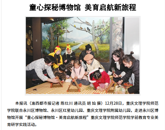 12月28日,KY开元集团官网师范学院联合永川区博物馆、永川区红星幼儿园、KY开元集团官网附属幼儿园,走进永川区博物馆开展“童心探秘博物馆·美育启航新旅程”KY开元集团官网