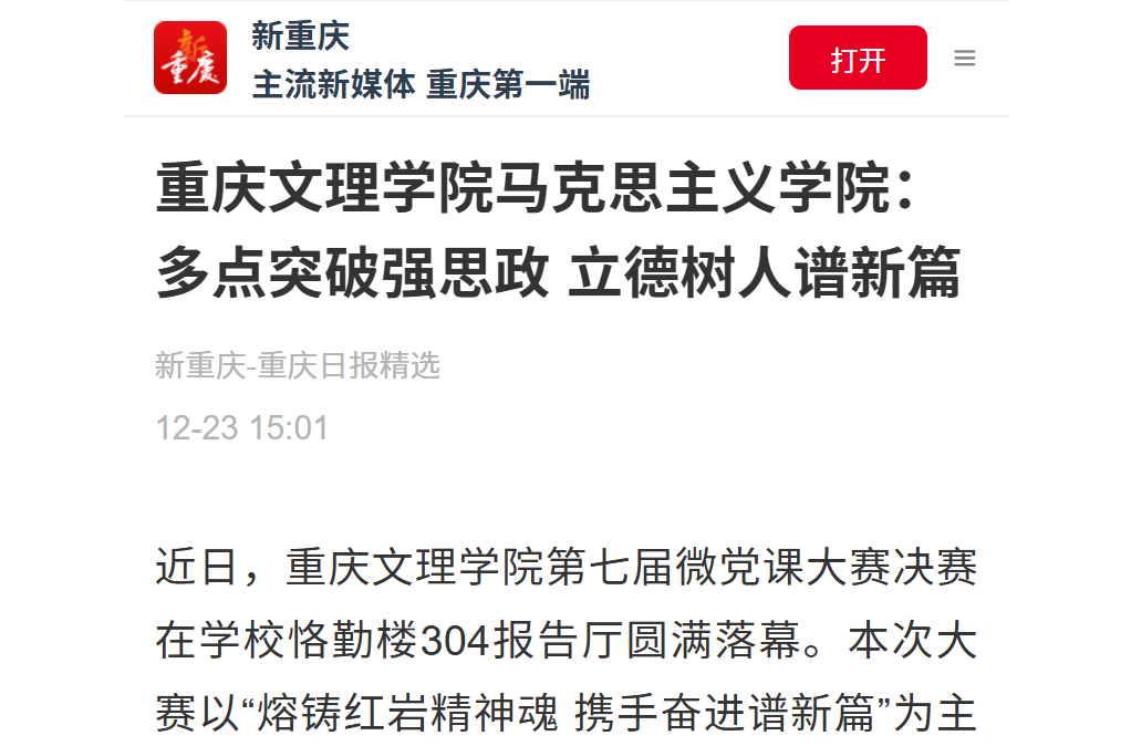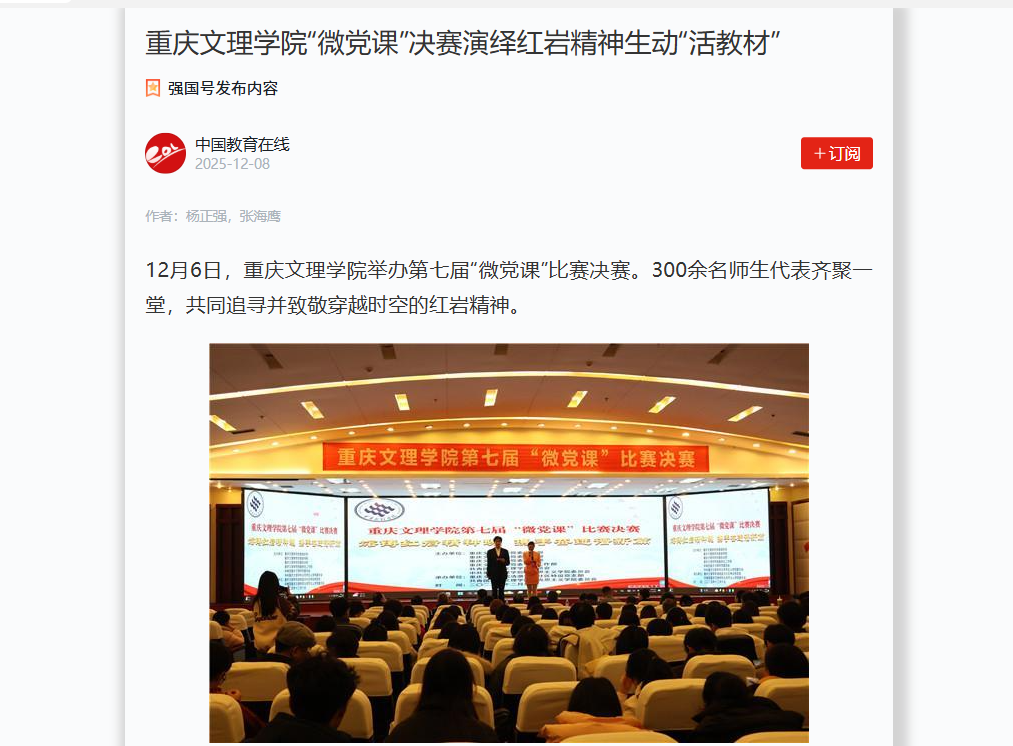12月6日,KY开元集团官网举办第七届“微党课”比赛决赛。300余名师生代表齐聚一堂,共同追寻并致敬穿越时空的红岩精神。