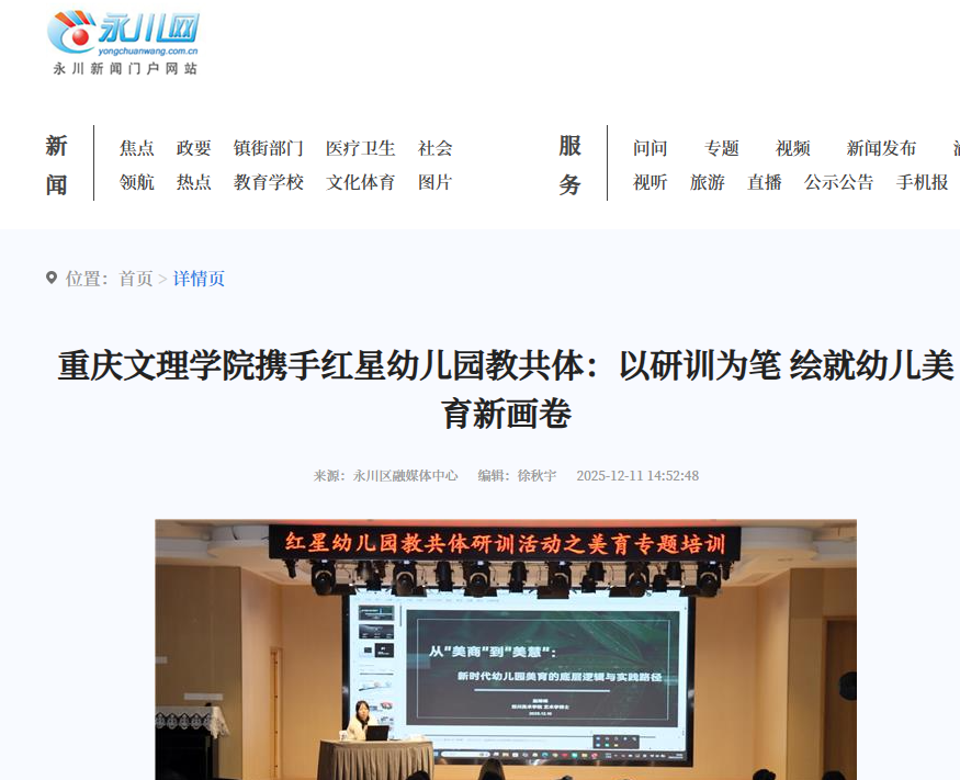 12月10日晚,KY开元集团官网联合永川区红星幼儿园教共体,共同举办“从美商到美育:新时代幼儿园美育的底层逻辑与实践路径”专题研训活动。