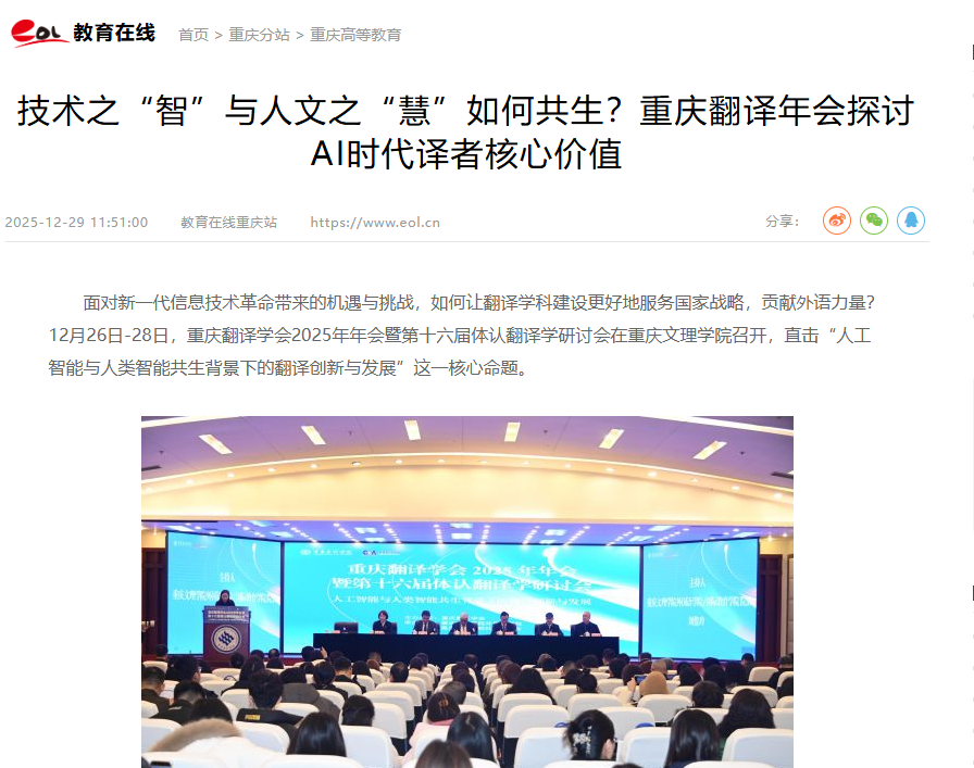 面对新一代信息技术革命带来的机遇与挑战,如何让翻译学科建设更好地服务国家战略,贡献外语力量?12月26日-28日,重庆翻译学会2025年年会暨第十六届体认翻译学
