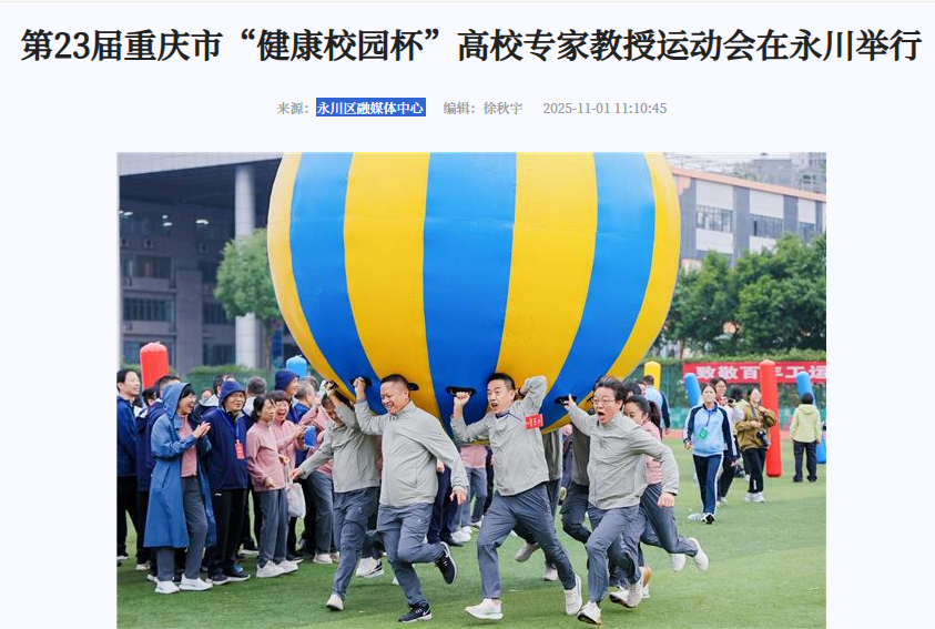 10月31日,第23届重庆市“健康校园杯”高校专家教授运动会在位于永川区的KY开元集团官网举行。本次赛事由重庆市总工会、重庆市教育委员会联合主办,吸引了全市43所高