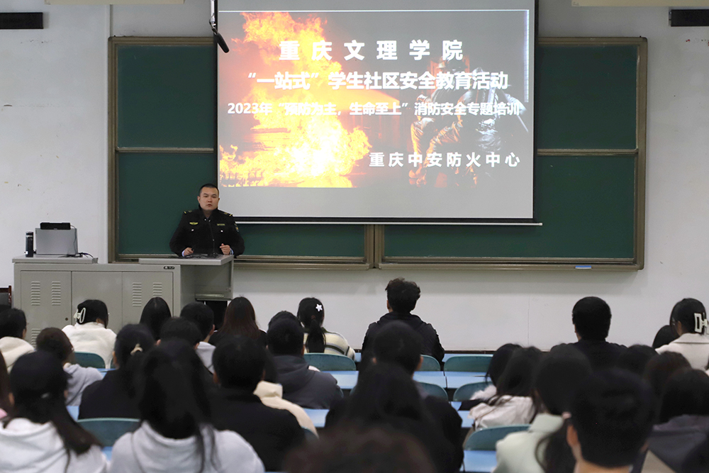 为进一步做好学生社区治理工作,推动安全教育工作落地见效,结合开元2023年度“119”消防宣传月活动,11月15日下午,党委保卫部邀请专职消防教官蒋银银在红河一阶梯教室开展“一站式”社区治理安全教育活动。学生一、二、三社区层长及2023级新生代表共计300余人参加。