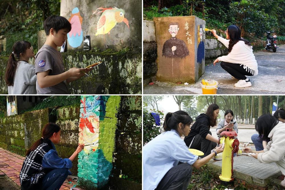 10月29—30日,美术与设计学院谢荣成、周独奇、唐恭俭、司桂松、徐利、刘敬彪等老师带领22级美术学、动画专业的89名同学前往卫星湖校区学生第四社区,开展“井上添画 美校悦心·行走的社区艺术”社区美化活动。