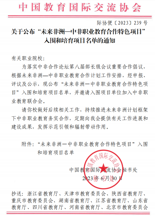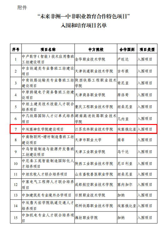 近日,中国教育国际交流协会公布了“未来非洲—中非职业教育合作特色项目”的入围名单,威尼斯官网申报的埃塞俄比亚神农学院建设项目成功入围,同时学院被邀请加入中非职业教育联合会。