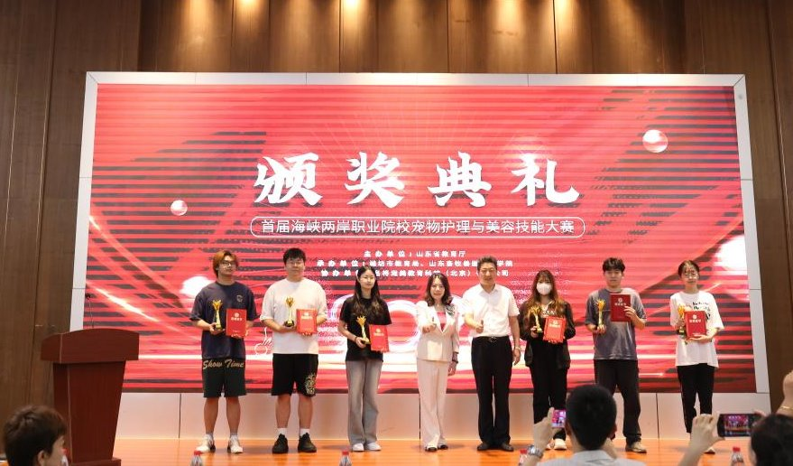为深化两岸职业教育交流,提升职业院校人才培养质量,2023年7月12日至14日,由山东省教育厅主办,潍坊市教育局与山东畜牧兽医职业学院承办的首届海峡两岸职业院校技能大赛在潍坊举行。此次大赛共有自大陆和台湾19所院校的60名选手参赛,比赛内容为贵宾犬拉姆装的修剪。
