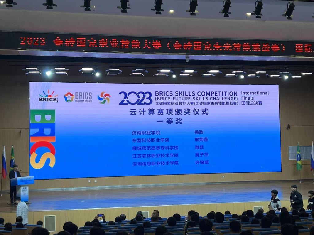 11月5日,2023金砖国家技能大赛国际总决赛“云计算”赛项在东营科技职业学院拉开帷幕。本次大赛由南非高等教育与培训部、金砖国家工商理事会、南非豪登省政府主办,金砖国家工商理事会(中方)技能发展工作组、一带一路暨金砖国家技能发展国际联盟、教育部中外人文交流中心组织,其中“云计算”赛项由东营科技职业学院承办。“云计算”赛项共有国内51支队伍线下参赛,国外13支队伍线上参赛。