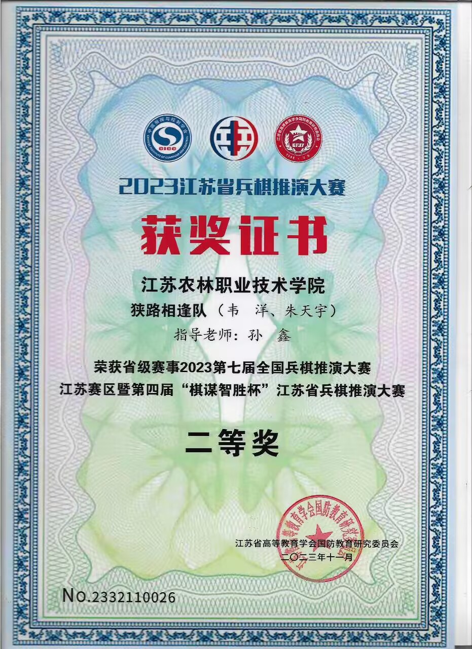近日,由中国指挥与控制学会指导,江苏省高等教育学会国防教育研究委员会主办的2023年全省普通高校本专科学科竞赛省级赛事——2023第七届全国兵棋推演大赛江苏赛区暨第四届“棋谋智胜杯”江苏省兵棋推演大赛已落下帷幕。该项赛事历时两个月,吸引了省内40个单位568支队伍1136名选手们迈入“没有硝烟的战场”,展开激烈的角逐对抗。威尼斯官网在此次比赛中获二等奖1项(获奖者:韦洋、朱天宇)。