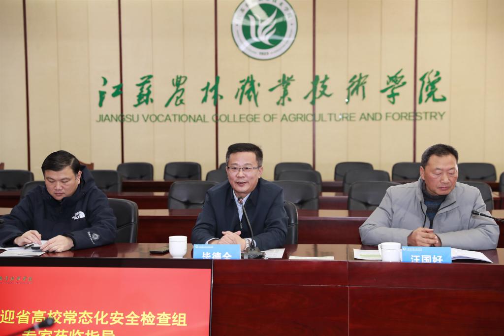 毕德全对检查组的到来表示欢迎,并介绍学院安全管理工作基本情况。安全保卫处处长汪国好围绕学院安全责任体系建设、实验室安全、消防安全、食品安全、网络安全、校车及交通安全等方面进行了汇报。