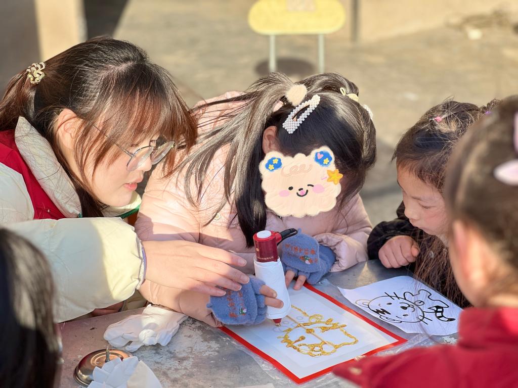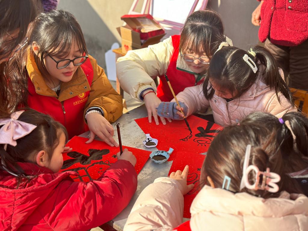 活动中,“小菁人”们走进孩子们的家,了解他们生活、学习、监护、健康状况以及所面临的困难,开展了关爱服务工作,为两名困境儿童送去了新衣、新鞋、学习文具等。“小菁人”们针对寒假易发多发的烟花爆竹、冻伤摔伤、交通事故、火灾、烧烫伤等意外风险,通过多种方式普及安全知识,引导孩子们安全自护。随后,“小菁人”们带领孩子们开展了糖果鞭炮、新春写福字、画糖画等趣味活动,孩子们踊跃参与,现场充满了孩子们的欢声笑语。