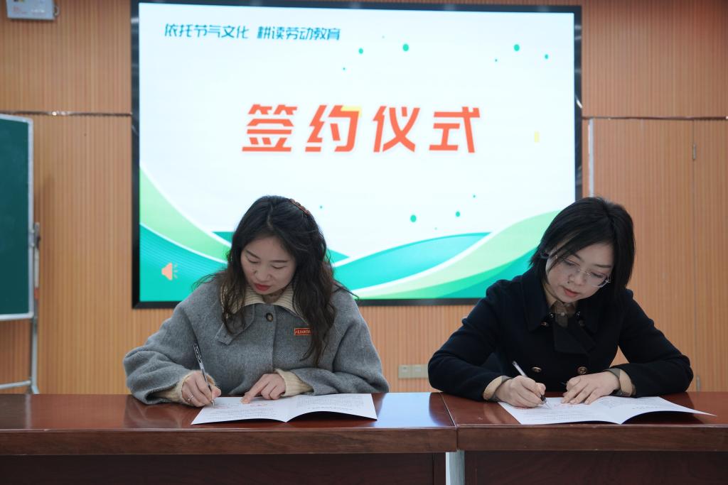 春分时节即将来临,活动以“春分时节绘节气,劳动教育融文化”劳动实践为契机,大学生牵手小学生共绘“24节气”主题墙绘,学生在劳动中求知,在收获中成长。活动现场,双方代表签署了合作协议,举行了大中小劳动教育一体化实践基地授牌仪式。句容市华阳中心小学校长刘莉介绍了该校进行劳动教育实践的目的及意义,她指出,该校从“探春、嬉夏、品秋、暖冬”四个方面,设置“知农事”“解食物”“觅习俗”“探职业”“践生活”五大课程板块,将二十四节气文化融入到劳动教育的课程中,让学生们跟着节气去劳动,能激发和培养孩子们热爱祖国传统文化的兴趣和爱好,为全面育人提供了有效的途径。