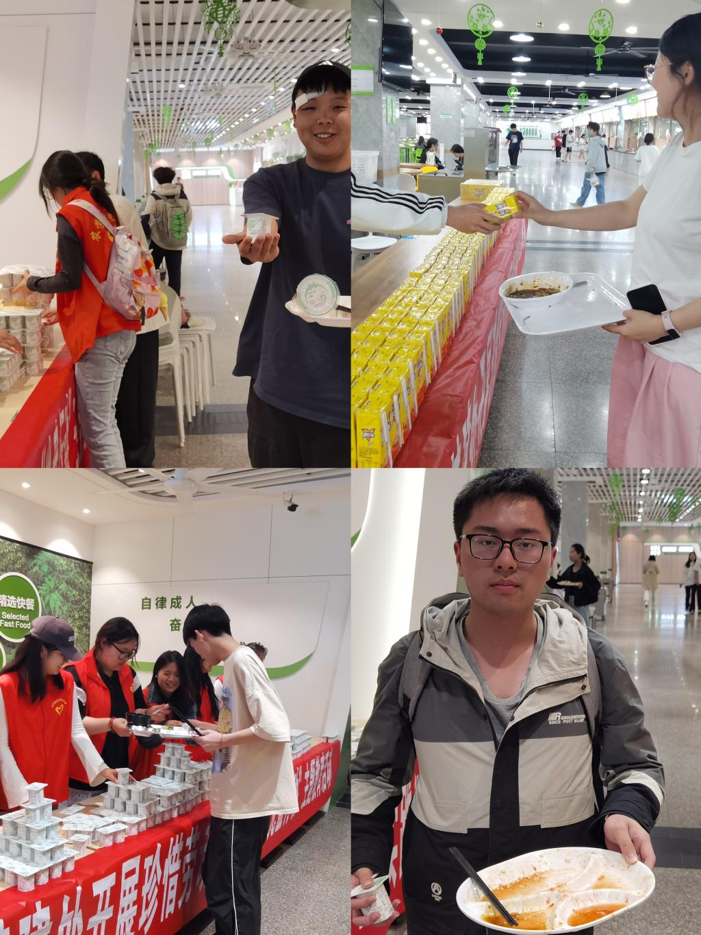 活动现场通过“光盘”换酸奶、换饮料、节粮知识宣传等方式,鼓励同学们珍惜盘中餐,引导同学们理性消费,杜绝铺张浪费,让每一位同学深刻感受到粮食的宝贵,树立一个健康的饮食观念,养成良好的饮食习惯和文明素养。