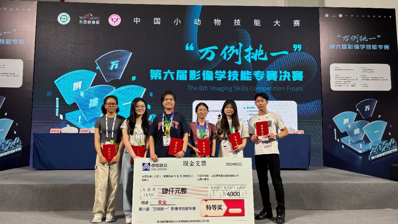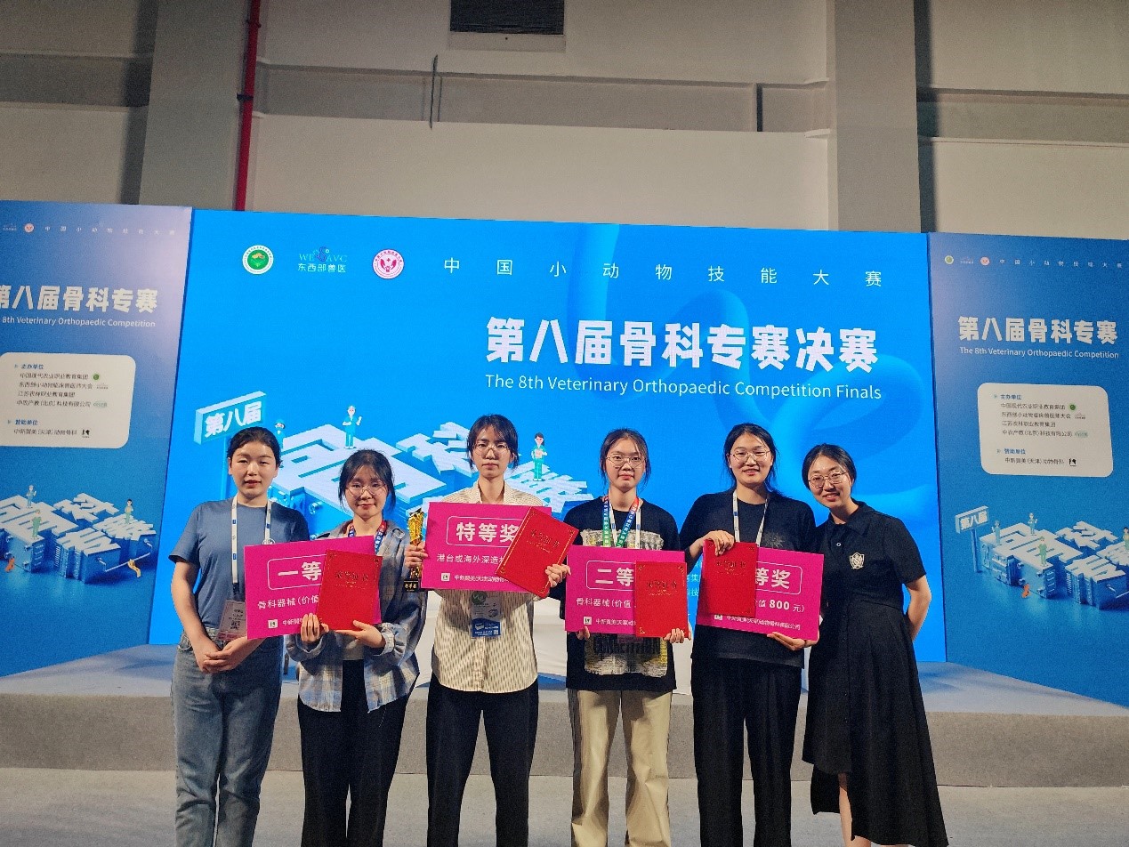 2024年6月1日,中国小动物临床技能大赛在杭州落下帷幕。畜牧兽医学院临床课组教师贾惠、林家琪老师指导的骨科代表队获得特等奖、一等奖、二等奖、三等奖各一名;刘京、王丽群老师指导的影像代表队获特等奖、二等奖各一名;陈倩、叶菁老师指导的美容代表队获特等奖一名、一等奖两名。
