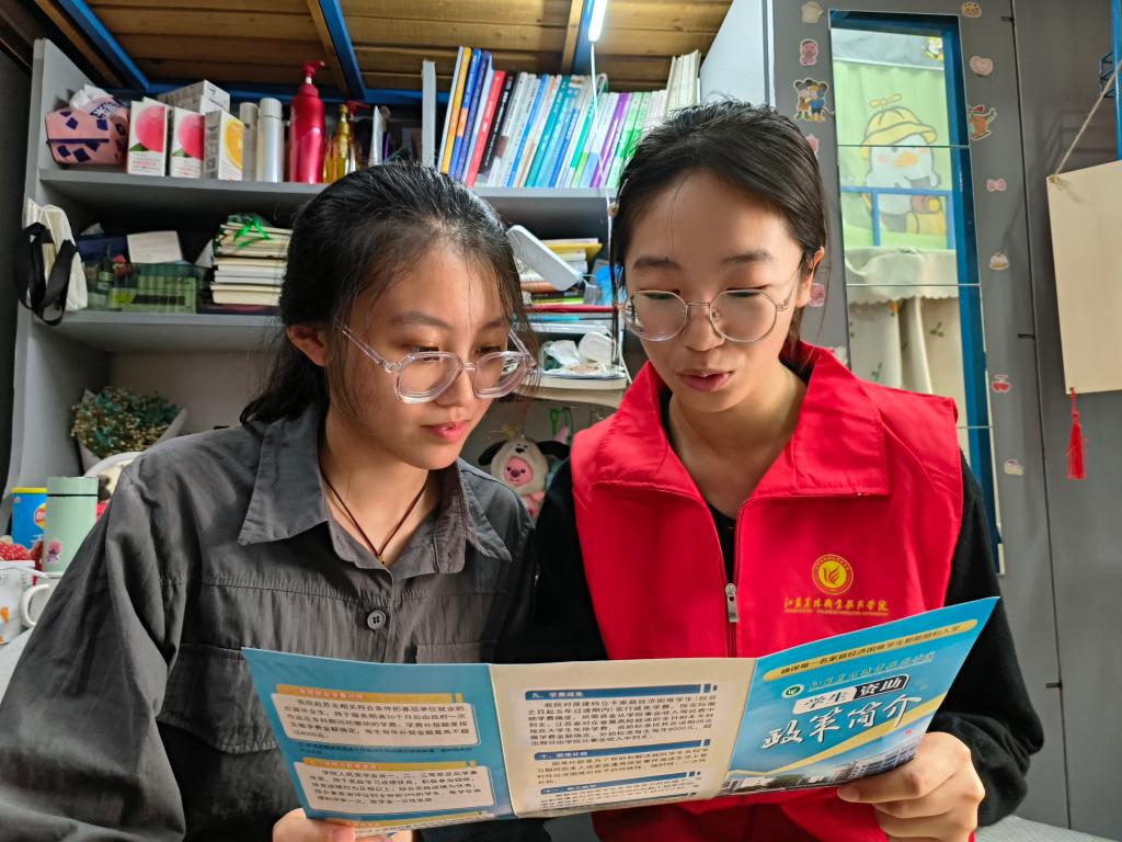 资助宣传进一站式社区。经济与人文学院学工办辅导员带领学院资助宣传大使进一站式社区,向学生发放资助政策宣传册,并为感兴趣的学生一对一详细讲解资助政策,同时走近受助学生,就学生关注的政策问题进行答疑解惑。