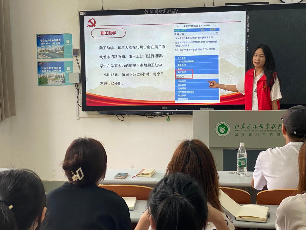 资助政策主题宣讲。经济与人文学院学工办辅导员和资助宣传大使向各班级资助政策宣传员做主题宣讲,系统介绍“奖、助、贷、勤、补、免、减”全方位资助体系,并由班级资助政策宣传员作为媒介,将资助政策传达到各班学生。