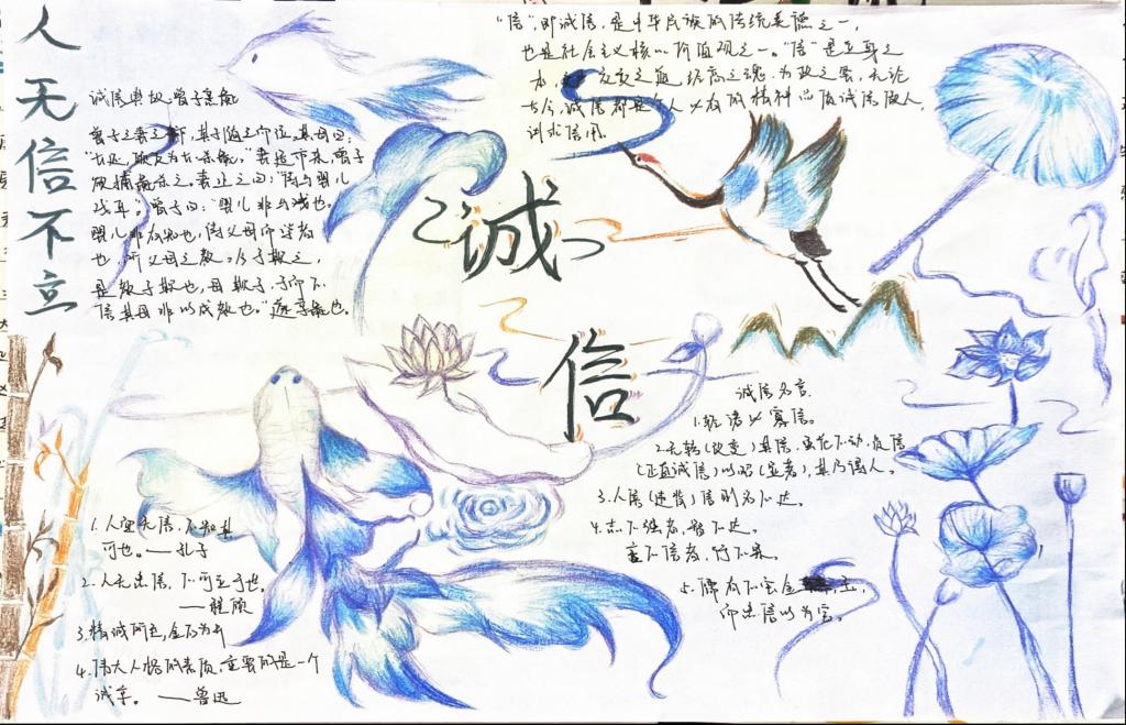 茶与食品科技学院鼓励各班级以丰富的活动形式为“诚信”赋能,充分调动学生活动积极性,引导学生在学习生活中主动宣扬诚信、践行诚信,营造出“人人讲诚信”的良好氛围。以涵盖历史诚信故事、当代诚信事迹、诚信漫画图片、诚信书法作品等内容开展了诚信宣传作品大赛活动,做到受资助学生全员覆盖、全员参与,进一步引导广大学生深入了解国家资助政策和学院工作举措,在活动中进一步强化感恩意识和诚信意识。