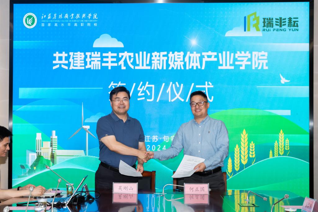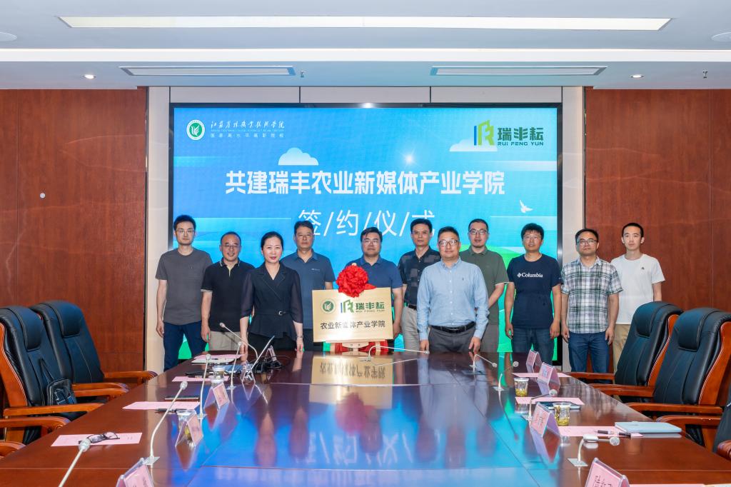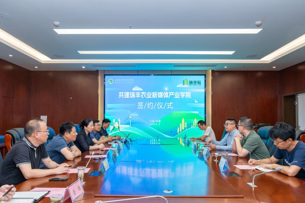 6月20日,学院与江苏瑞丰信息技术股份有限公司共建瑞丰农业新媒体产业学院签约挂牌仪式在大学生艺术中心103会议室举行。学院党员委员、副院长王瑾,江苏瑞丰信息技术股份有限公司何正国副总经理一行,科技开发处以及信息工程学院负责同志出席签约暨挂牌仪式。