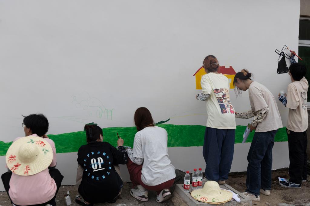 在活动开展前期,团队成员们精心策划,与当地村委会和村民进行了深入的沟通,充分了解了乡村的历史文化、风土人情以及发展需求,希望通过墙绘展现乡村的独特魅力和美好愿景。墙绘过程中,同学们不畏酷暑,分工合作,调色、勾线、填充,每一个步骤都一丝不苟。他们用手中的画笔,将社会主义核心价值观、美丽乡村建设、传统文化传承等主题生动地呈现在墙壁上。一幅幅色彩鲜艳、寓意深刻的墙绘作品,不仅美化了乡村环境,更成为了传递文明新风、激发乡村活力的重要载体。